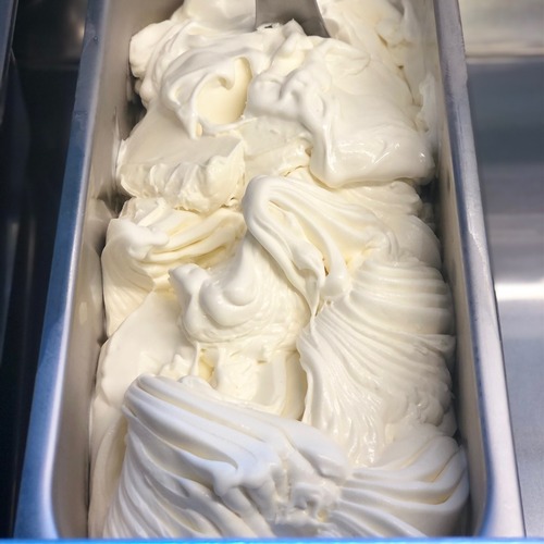 マダガスカル産のバニラビーンズの香るミルクジェラートとレモンのジェラート。和歌山県の無農薬レモンを使用しています。